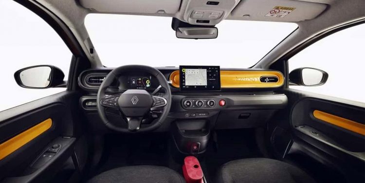 Στο εσωτερικό, το Twingo συνδυάζει την ευχάριστη ατμόσφαιρα των παλαιότερων γενιών με σύγχρονη τεχνολογία. Ο ψηφιακός πίνακας οργάνων των 7,0 ιντσών και η οθόνη πολυμέσων των 10,1 ιντσών κυριαρχούν στο ταμπλό, ενώ το χαρακτηριστικό κόκκινο πλήκτρο των alarm και οι μαγνητικές βάσεις για smartphones αποτελούν τόσο πρακτικές όσο και παιχνιδιάρικες πινελιές. ευρυχωρίας.