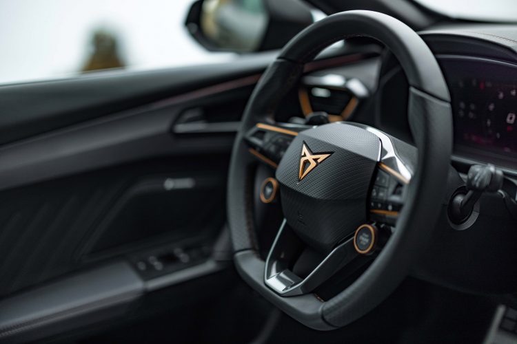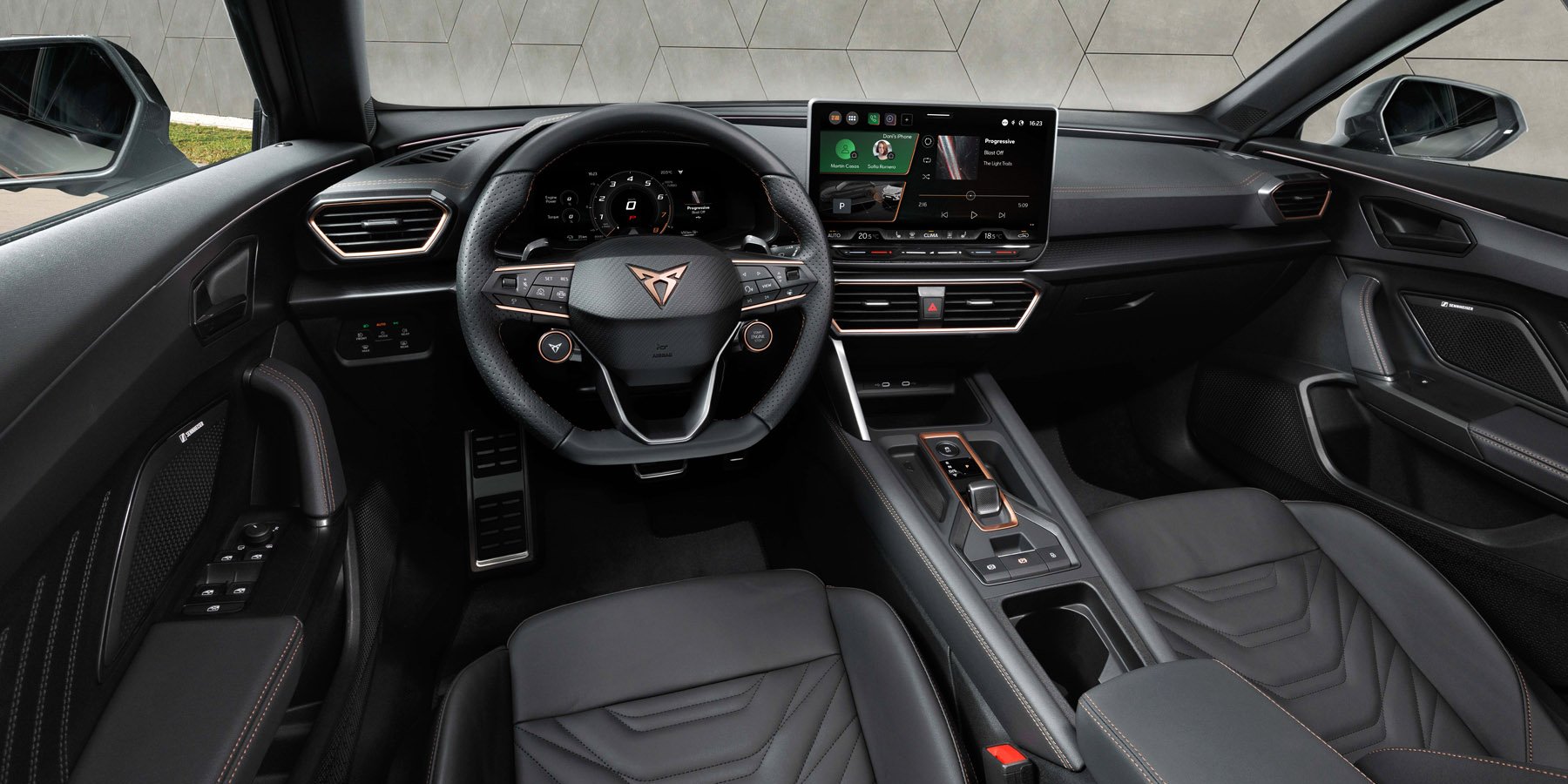 Περνώντας στο εσωτερικό, η CUPRA έχει δημιουργήσει ένα περιβάλλον με premium υλικά και μοντέρνο σχεδιασμό. Το ταμπλό είναι μεταμοντέρνο και προσανατολισμένο προς τον οδηγό, με καθαρές γραμμές και επιφάνειες που εναλλάσσουν μαλακά υλικά, μεταλλικές λεπτομέρειες και φωτιζόμενες επενδύσεις. Ο ψηφιακός πίνακας οργάνων των 10,25 ιντσών προσφέρει πλήρη παραμετροποίηση, ενώ η οθόνη αφής των 12,9 ιντσών ενσωματώνει το infotainment και τις ρυθμίσεις του αυτοκινήτου με γρήγορη απόκριση.