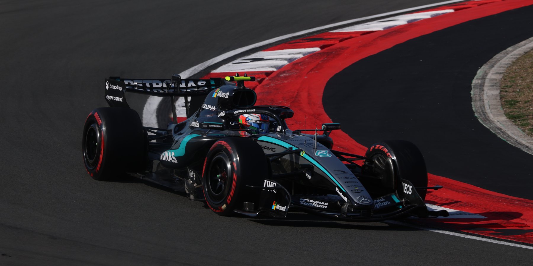 Στη δεύτερη θέση τερμάτισε ο Russell, μπροστά από τις Ferrari των Hamilton και Leclerc.