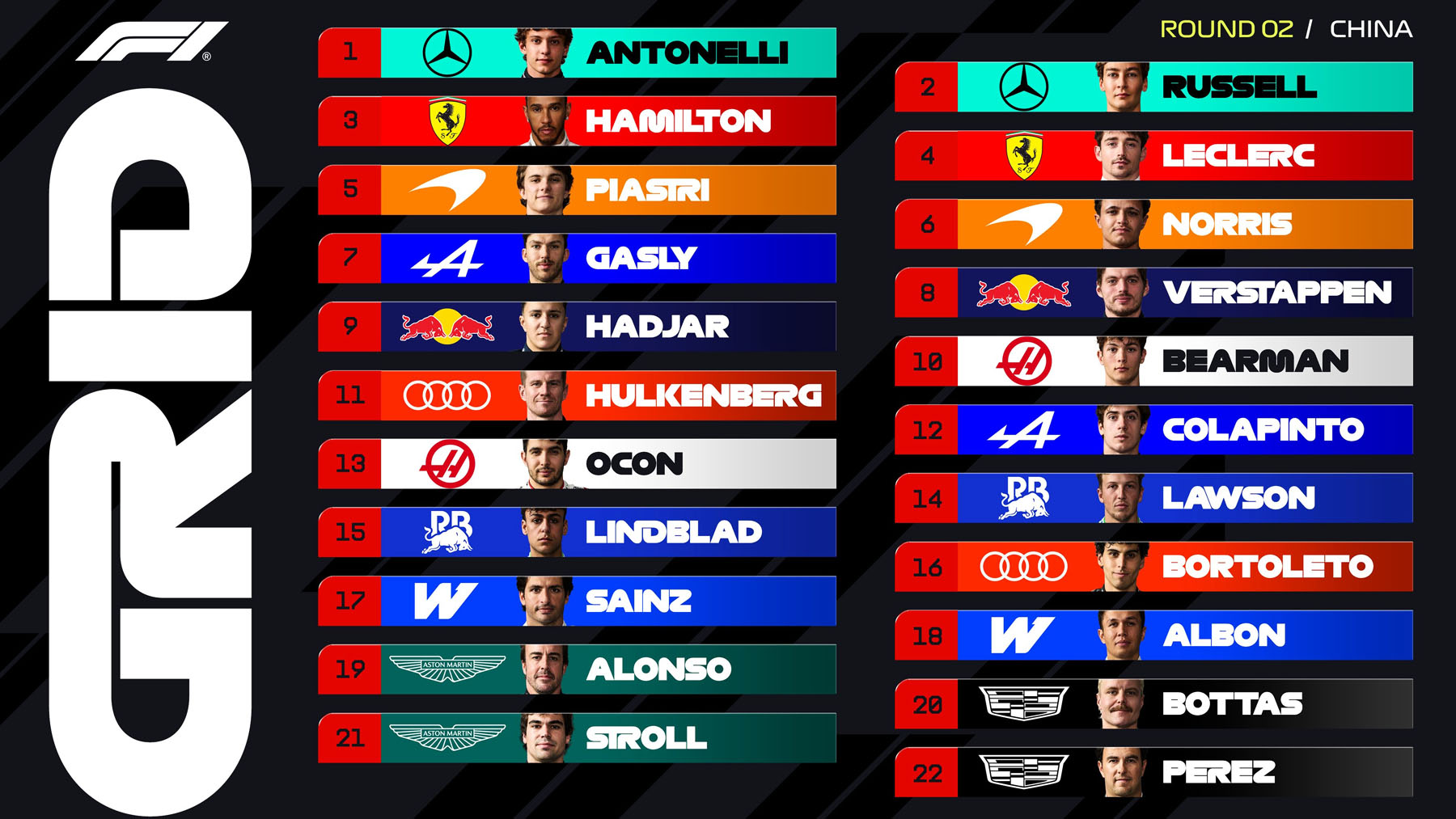 Στην τέταρτη θέση του Sprint, πίσω από τους Russell, Leclerc και Hamilton βρέθηκε ο Norris, μπροστά από τον Antonelli. Ο οποίος στη συνέχεια και στα επίσημα δοκιμαστικά πήρε την πρώτη pole της καριέρας του, ενώ έγινε και ο μικρότερος σε ηλικία πιλότος -είναι 19 ετών- που το πετυχαίνει.