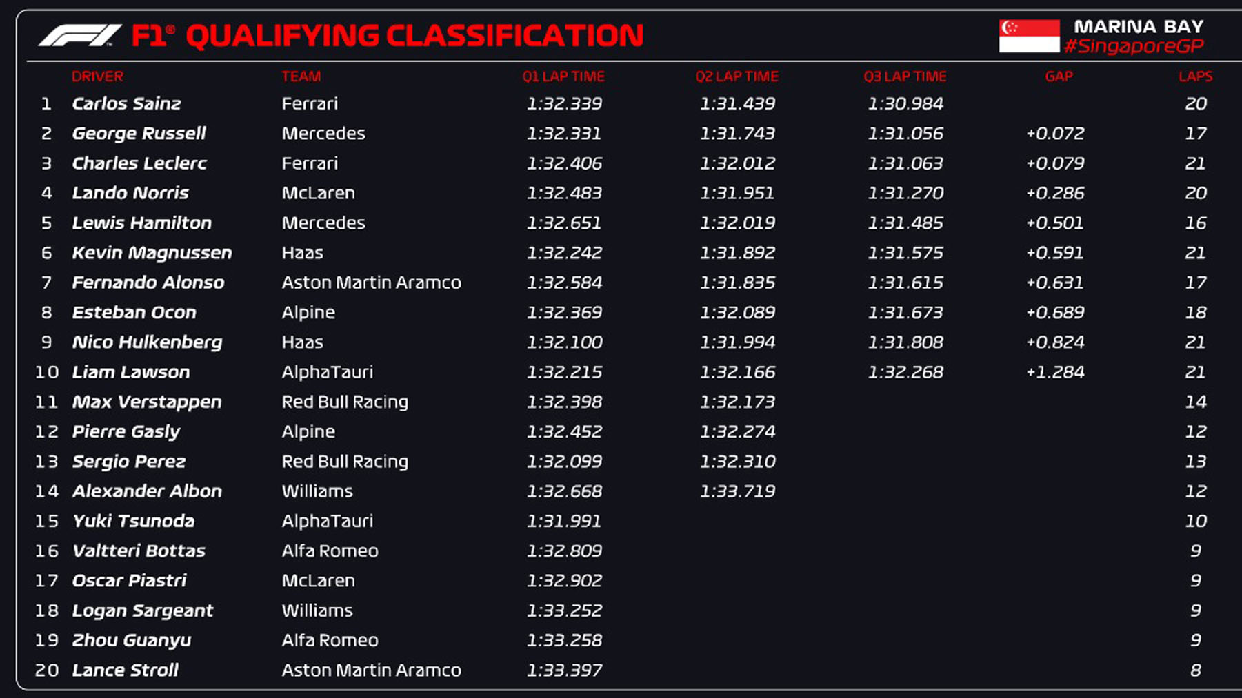 Είχαμε πολύ καιρό να μην δούμε κανένα μονοθέσιο της Red Bull να μην περνά στο Q3. Συγκεκριμένα, τόσο ο Verstappen όσο και ο Perez κόπηκαν και δεν πέρασαν από το Q2, μαζί με τους Gasly, Albon και Tsunoda.