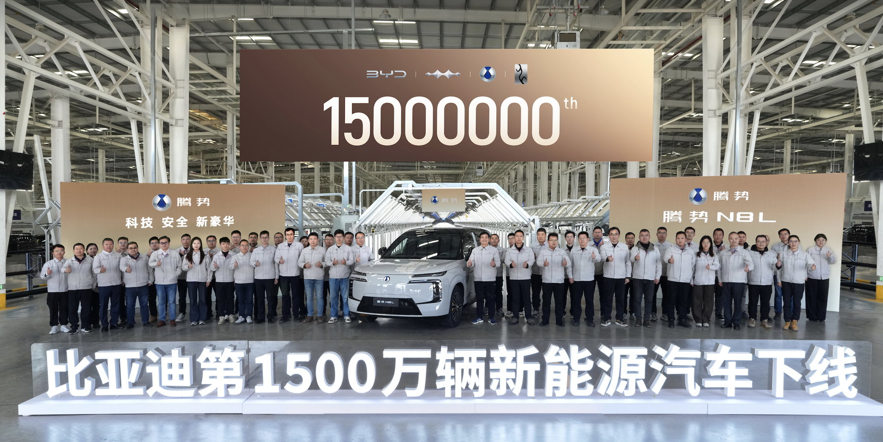Η συμβολική «κορδέλα» κόπηκε στο εργοστάσιο της εταιρείας στην πόλη Jinan της Κίνας, ένα από τα νεότερα βιομηχανικά της συγκροτήματα, το οποίο ξεκίνησε τη μαζική παραγωγή μόλις πριν από τρία χρόνια. Εκεί, εργαζόμενοι και στελέχη της BYD γιόρτασαν την έξοδο από τη γραμμή παραγωγής του 15.000.000ού NEV, που δεν ήταν άλλο από ένα DENZA N8L, ένα μεγάλο, εξαθέσιο SUV της premium μάρκας DENZA.