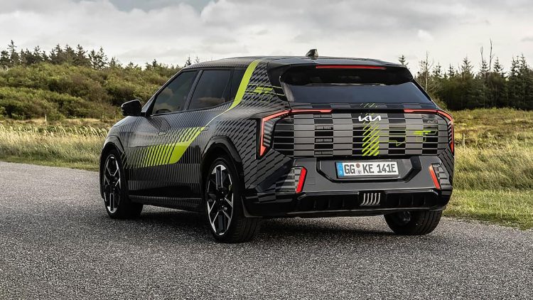 Η Kia αποκάλυψε φωτογραφίες καμουφλαρισμένου πρωτοτύπου, όπου διακρίνονται διαφοροποιήσεις στη σχεδίαση: ανασχεδιασμένοι προφυλακτήρες, ζάντες 20 ιντσών, πράσινες δαγκάνες φρένων και λεπτομέρειες που υποδηλώνουν αυξημένες αεροδυναμικές απαιτήσεις.