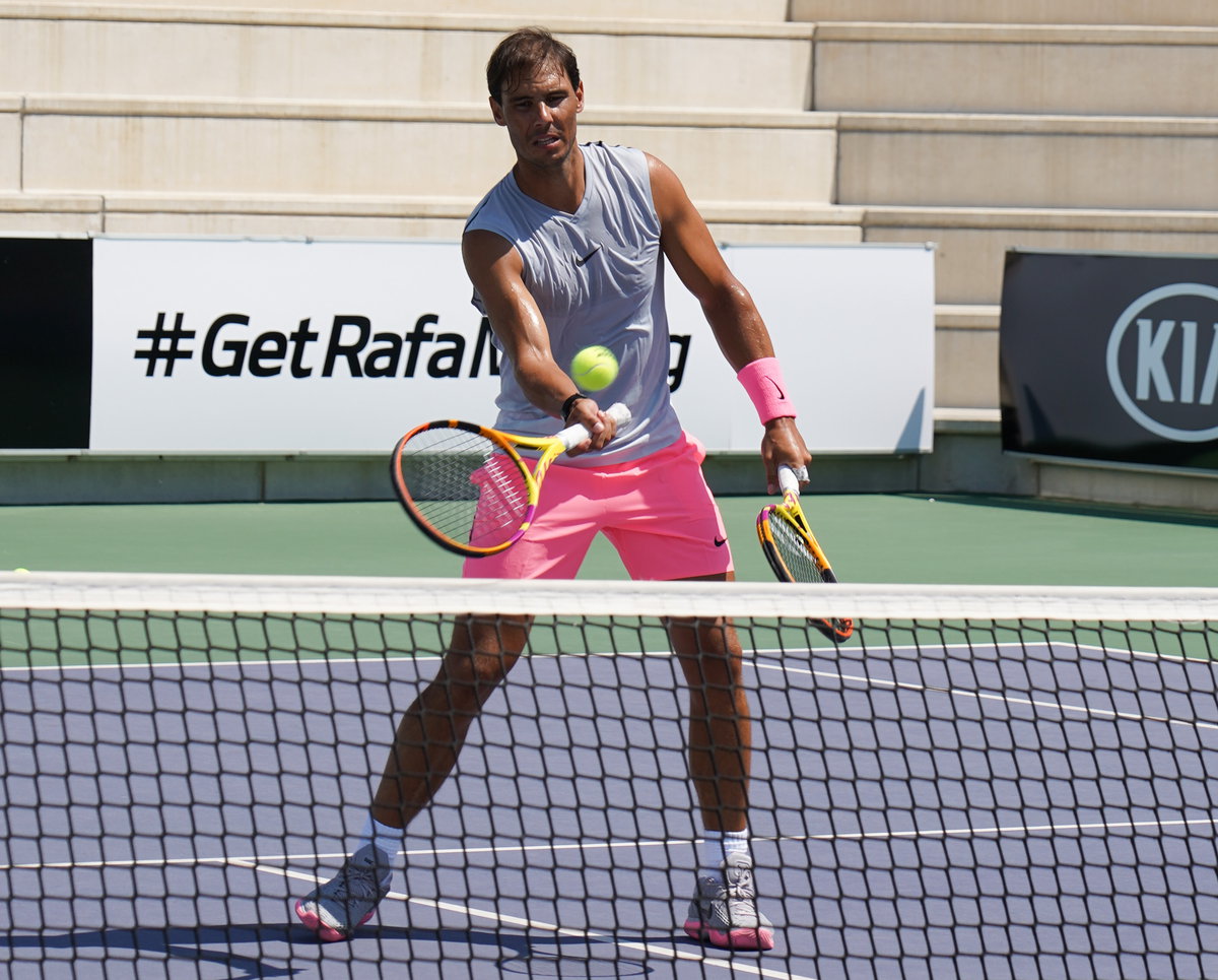 Από την Ακαδημία Rafael Nadal στην πατρίδα του, τη Μαγιόρκα της Ισπανίας, η απευθείας μετάδοση στη σελίδα #GetRafaMoving είχε πάρα πολλούς οπαδούς που συμμετείχαν σε ψηφοφορία σε πραγματικό χρόνο με τον Nadal στο γήπεδο. Μέσα από μια σειρά emoji, οι θαυμαστές του είχαν τον απόλυτο έλεγχο και εξατομίκευσαν την προπονητική επίδειξη με βάση αυτό που επιθυμούσαν να δουν περισσότερο από τον Nadal. Καθ’ όλη τη διάρκεια της αποκλειστικής προπόνησης, ο Nadal έκανε μια σειρά από εξαιρετικά δύσκολες και απίθανες ασκήσεις.