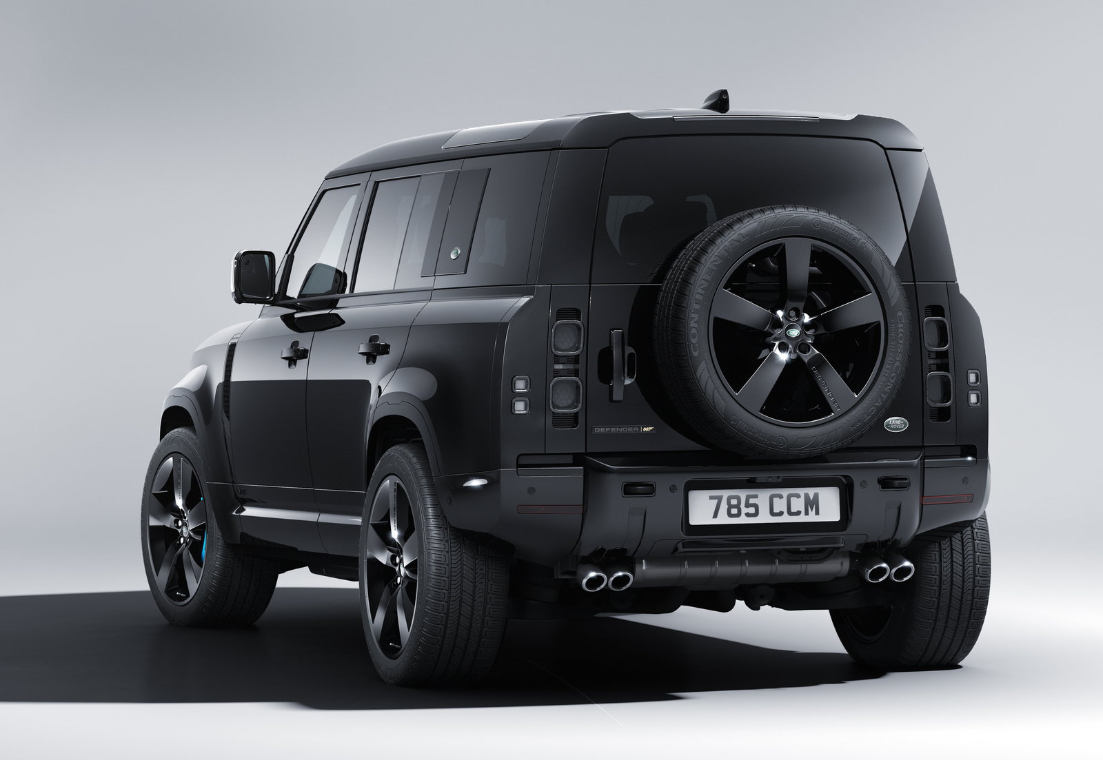 Διαθέσιμο για παραγγελία σε έκδοση Defender 110 ή 90 και εμπνευσμένο από τις προδιαγραφές των Defenders που εμφανίζονται στο No Time To Die, το μυστηριώδες Defender V8 Bond Edition περιλαμβάνει ένα Extended Black Pack με ζάντες αλουμινίου Luna 22 ιντσών σε Gloss Black, χαρακτηριστικές δαγκάνες εμπρός φρένων Xenon Blue και πίσω σήμα «Defender 007».