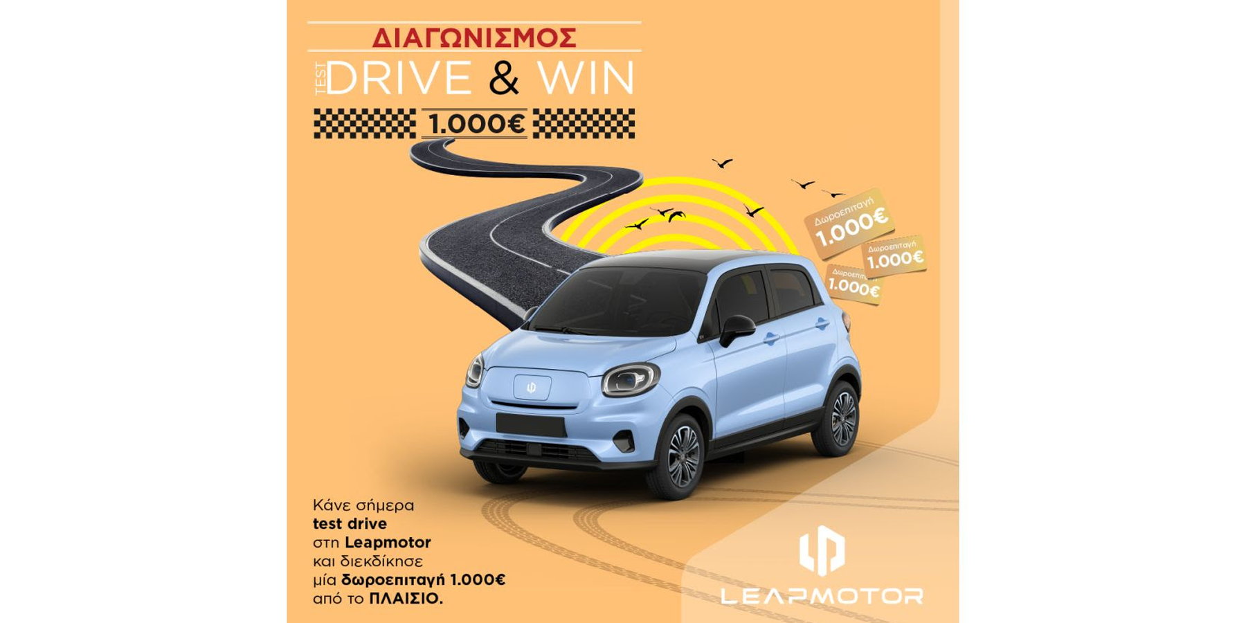 Αποτελώντας την συνέχεια του διαγωνισμού «Η Leapmotor σε πάει διακοπές» που έγινε το καλοκαίρι, το «Test Drive & Win» βρίσκεται ήδη σε ισχύ και θα ολοκληρωθεί στις 30 Νοεμβρίου 2025.