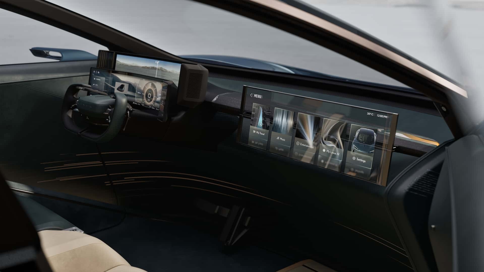 Το ταμπλό περιλαμβάνει διπλό επίπεδο οθονών για τον οδηγό και μία τεράστια οθόνη για τον συνοδηγό.
