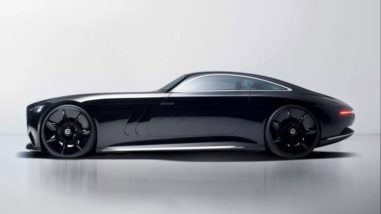 Το προφίλ του παραπέμπει στα Vision Mercedes-Maybach 6 Coupé και Cabriolet του 2016-2017, με μακρύ καπό, πλαϊνές γρίλιες και ρευστή οροφή που καταλήγει σε ουρά εμπνευσμένη από την 300 SL Gullwing.