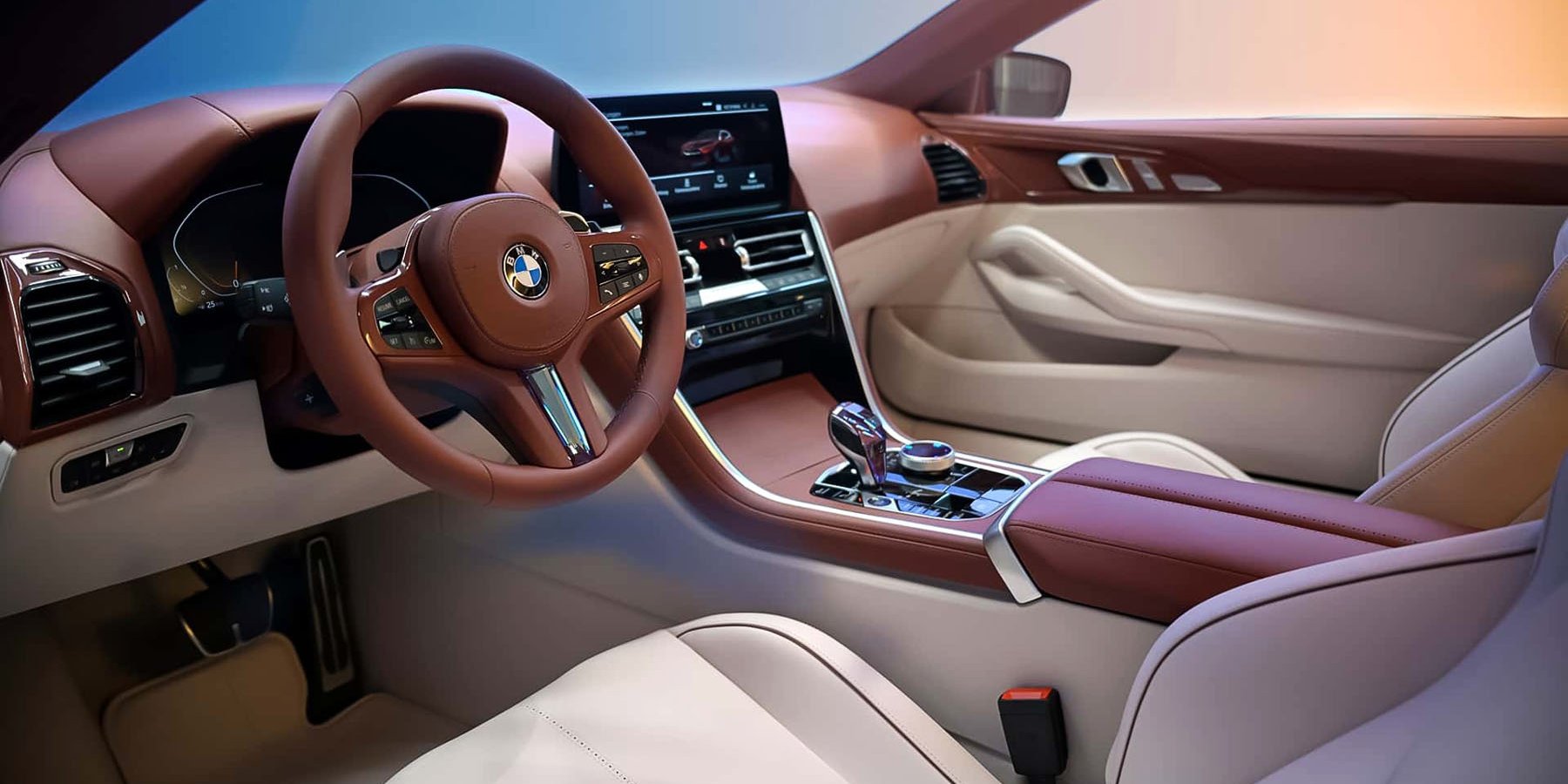 Το αυστηρά διθέσιο εσωτερικό ακολουθεί την ίδια λογική: πολυτελές, αλλά χωρίς περιττά στοιχεία. Χρωματικά κυριαρχεί το σκούρο Sundown Maroon και το φωτεινό Moonstone White, ενώ το διάτρητο δέρμα είναι εμπνευσμένο από τα παπούτσια τύπου.