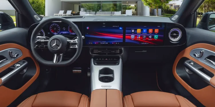 Η πιο εντυπωσιακή αλλαγή εντοπίζεται στο εσωτερικό όπου θα δεσπόζει το νέο προαιρετικό MBUX Superscreen. Που συνδυάζει μια οθόνη 10,25 ιντσών για τον πίνακα οργάνων, μια κεντρική οθόνη αφής 14,0 ιντσών και μια αντίστοιχου μεγέθους οθόνη για τον συνοδηγό, δημιουργώντας ένα πλήρως ψηφιακό περιβάλλον εμπνευσμένο από τα EQ της μάρκας.