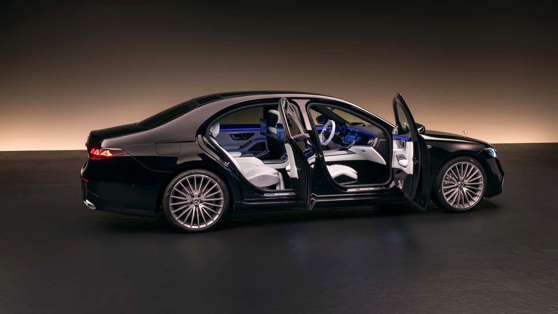 Στον τομέα της άνεσης, η αερανάρτηση Airmatic και η τετραδιεύθυνση παραμένουν στάνταρ, με δυνατότητα αυξημένης γωνίας στροφής έως 10 μοίρες. Η μακριά έκδοση μετατρέπει τους πίσω επιβάτες σε πραγματικούς VIP, με καθίσματα lounge, μασάζ, ψυγείο και οθόνες 33,3 ιντσών για τηλεδιασκέψεις.