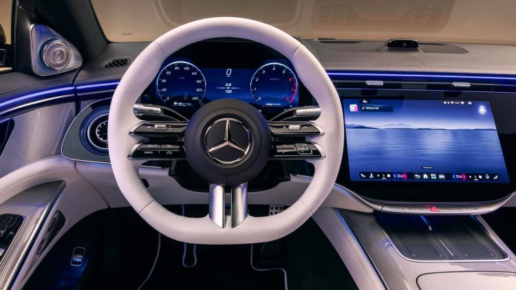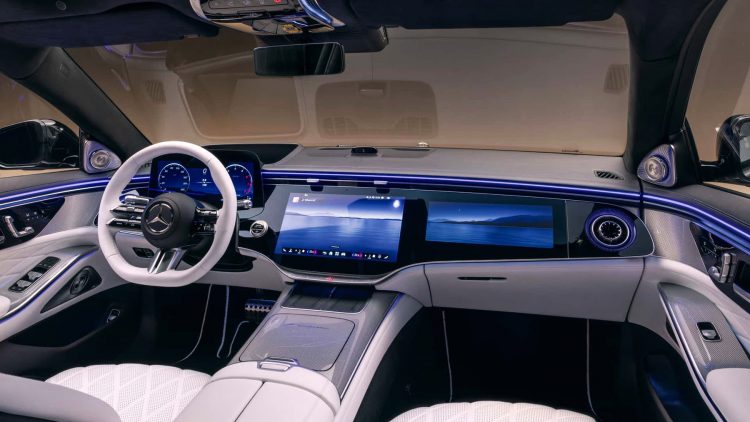 Στο εσωτερικό, η αλλαγή είναι ριζική. Η S-Class εξοπλίζεται πλέον αποκλειστικά με το Superscreen, μια εξελιγμένη εκδοχή του Hyperscreen, με τρεις ενσωματωμένες οθόνες που κυριαρχούν στο ταμπλό.