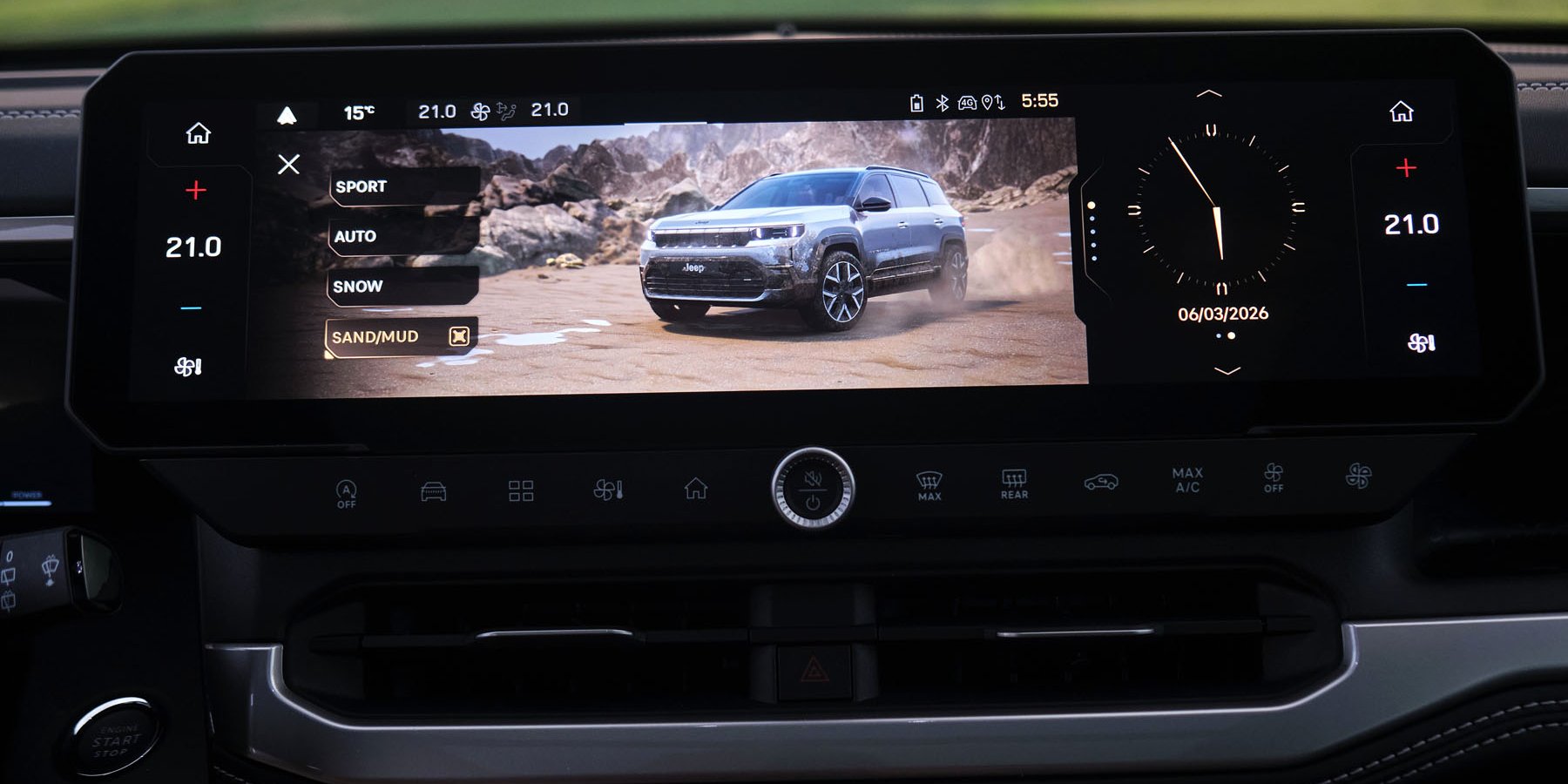 Στο εσωτερικό, το νέο Compass δείχνει σαφώς πιο σύγχρονο. Ο οδηγός έχει μπροστά του έναν ψηφιακό πίνακα οργάνων 10,25 ιντσών, ενώ στο κέντρο του ταμπλό υπάρχει μια μεγάλη οθόνη αφής 16 ιντσών για το σύστημα infotainment. Το σύστημα υποστηρίζει ασύρματο Apple CarPlay και Android Auto, ενώ υπάρχει και Head-Up Display που προβάλλει βασικές πληροφορίες στο παρμπρίζ.