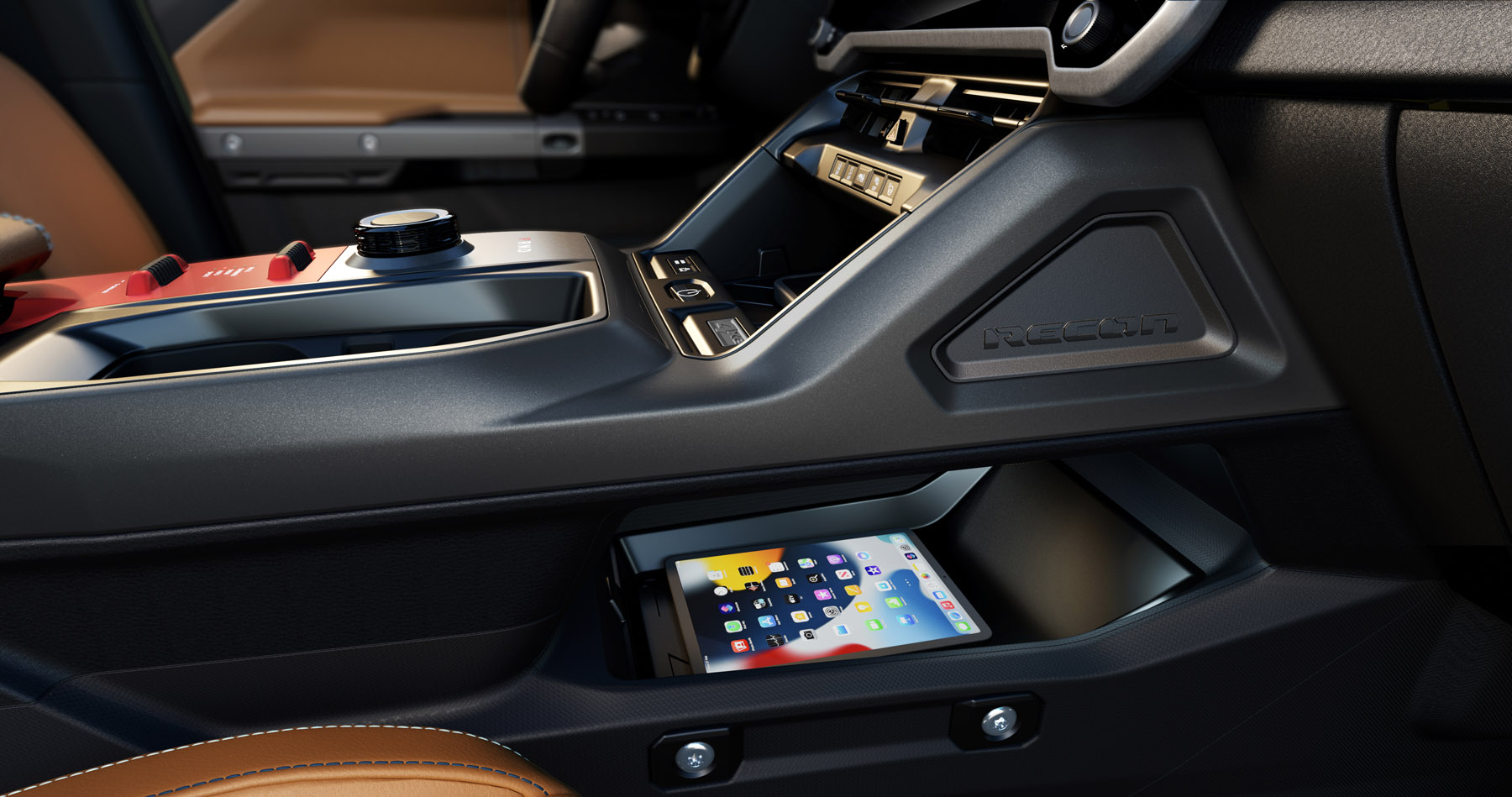 Τεχνολογικά, το Recon διαθέτει πάνω από 66 εκατοστά ψηφιακών οθονών, με πίνακα 12,3’’ και κεντρική οθόνη 14,5’’ με Uconnect 5, δυναμική χαρτογράφηση αυτονομίας (TomTom), ψηφιακό κλιματισμό και φυσικούς διακόπτες για τα βασικά.
