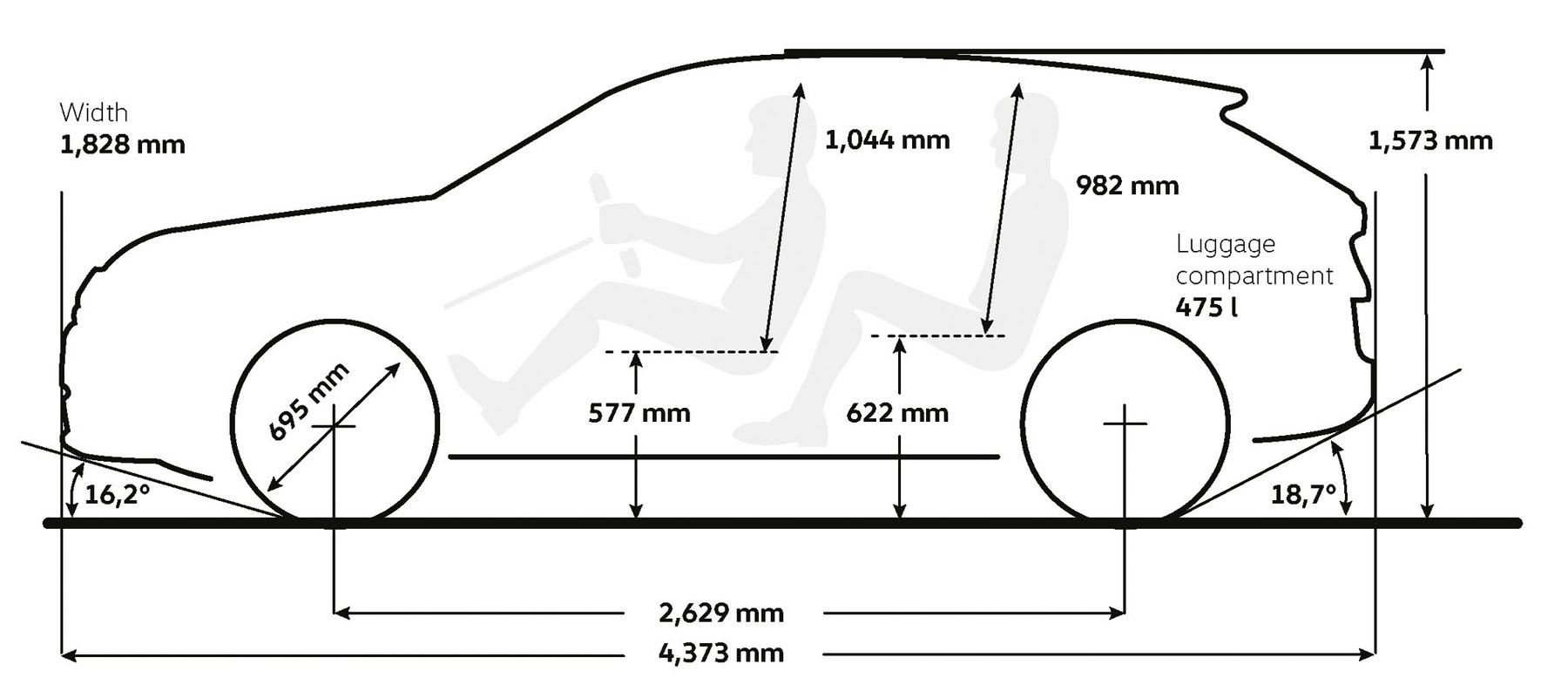 Με μήκος 4,373 μέτρα (πλάτος 1,828 μέτρα) και μεταξόνιο 2.629 χιλιοστά, το νέο T-Roc προσφέρει πιο άνετους χώρους για επιβάτες και αποσκευές, με το πορτμπαγκάζ να φτάνει τα 475 λίτρα και να μπορεί να επεκταθεί έως τα 1.350 με την αναδίπλωση της πλάτης των πίσω καθισμάτων.