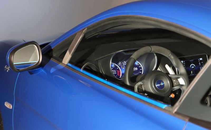 Το εσωτερικό είναι σύγχρονο και δεν κρύβει το σπορ προσανατολισμό, ενώ ενδιαφέρον είναι πως τα καθίσματα δεν ρυθμίζονται ως προς την κλίση της πλάτης τους. Για δύο πάντως υπάρχει σχετική άνεση, χάρη και στο μεταξόνιο των 2,42 μέτρων, ενώ υπάρχει ψηφιακός πίνακας οργάνων και μια μεγάλη οθόνης αφής στο κέντρο του ταμπλό. Το κόκκινο μπουτόν στο τιμόνι αποκαλύπτει πως υπάρχουν περισσότερα του ενός προγράμματα οδήγησης -είναι τρία τα Normal, Sport και Race- ενώ με μπουτόν στην κεντρική κονσόλα γίνεται η επιλογή του D, του R και του N του αυτόματου. Μπουτόν για το P δεν υπάρχει, καθώς θα επιλέγεται μάλλον αυτόματα όταν η Alpine μένει για κάποια ώρα ακινητοποιημένη.