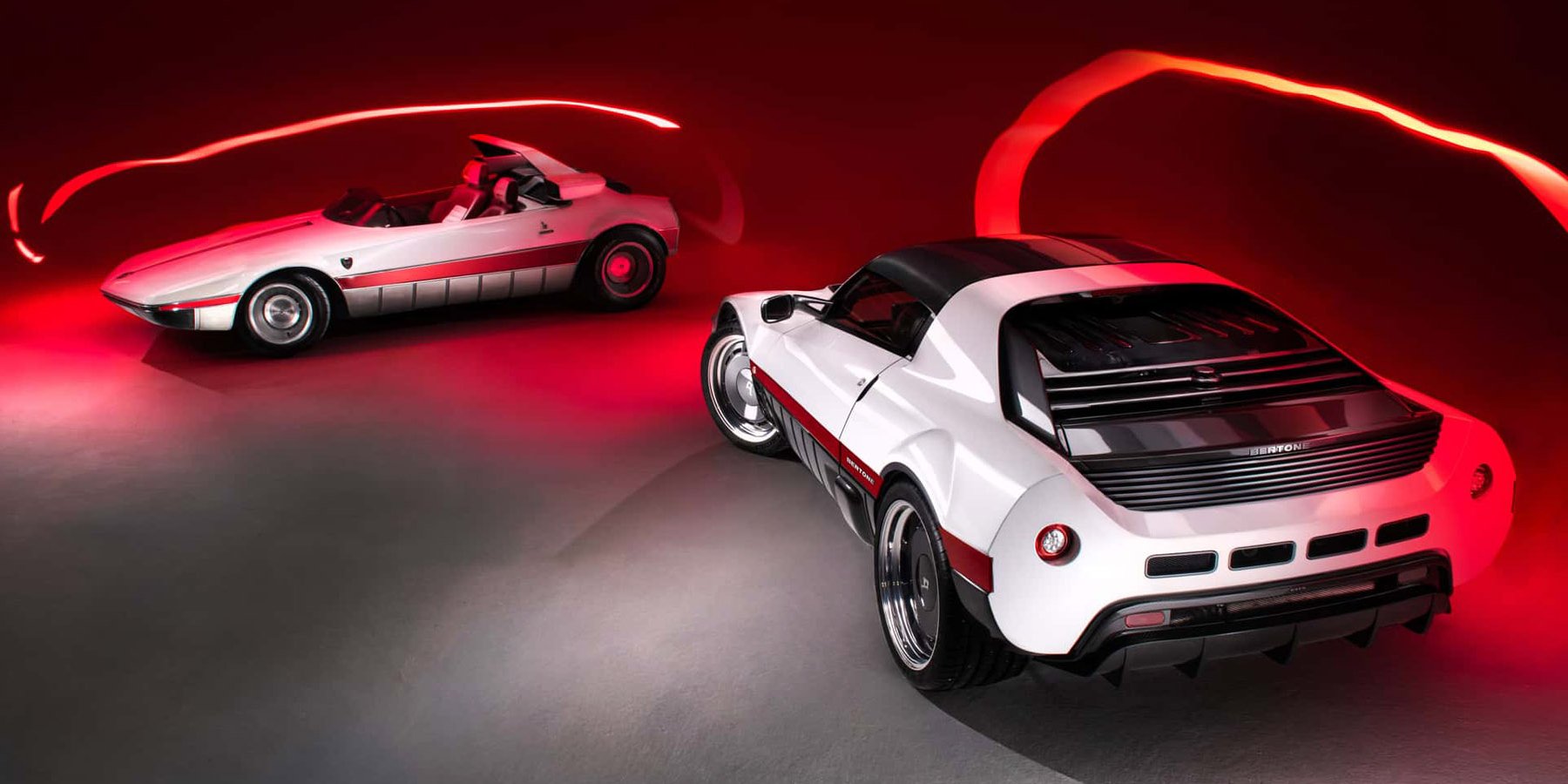 Το Bertone Runabout είναι διαθέσιμο τόσο ως ανοιχτή barchetta, πιστή στο πρωτότυπο του 1969 όσο ως targa με αποσπώμενη οροφή και κανονικό παρμπρίζ, για όσους αναζητούν περισσότερη καθημερινή χρηστικότητα. Και στις δύο περιπτώσεις, οι αναλογίες, οι έντονες ακμές και το χαμηλό προφίλ παραπέμπουν ξεκάθαρα σε εμβληματικά σχέδια του Marcello Gandini, όπως το Fiat X1/9.