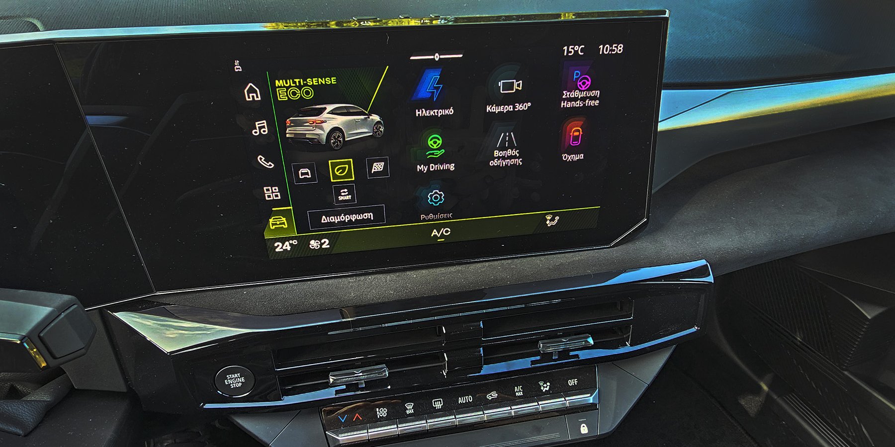 Στο εσωτερικό, η αναβάθμιση είναι εμφανής. Η ψηφιακή φιλοσοφία OpenR Link περιλαμβάνει πίνακα οργάνων έως 10,25 ίντσες και κεντρική οθόνη 10,1 ιντσών με ενσωματωμένες λειτουργίες Google, ενώ η ποιότητα υλικών και συναρμογής αφήνει premium αίσθηση για τα δεδομένα της κατηγορίας. Τα καθίσματα προσφέρουν πολύ καλή στήριξη και άνεση, ενισχύοντας τον οδηγοκεντρικό του χαρακτήρα.