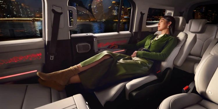 Στο ταμπλό υπάρχει ένα πίνακας οργάνων με διαγώνιο 35,4 ιντσών που καλύπτει σχεδόν όλο το πλάτος, μια κεντρική οθόνη 15,6 ιντσών και μια αναδιπλούμενη οθόνη 17,3 ιντσών για όσους κάθονται πίσω.