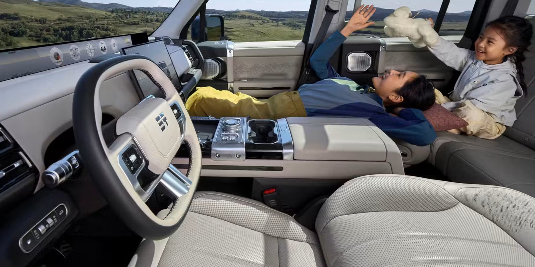 Στο ταμπλό υπάρχει ένα πίνακας οργάνων με διαγώνιο 35,4 ιντσών που καλύπτει σχεδόν όλο το πλάτος, μια κεντρική οθόνη 15,6 ιντσών και μια αναδιπλούμενη οθόνη 17,3 ιντσών για όσους κάθονται πίσω.